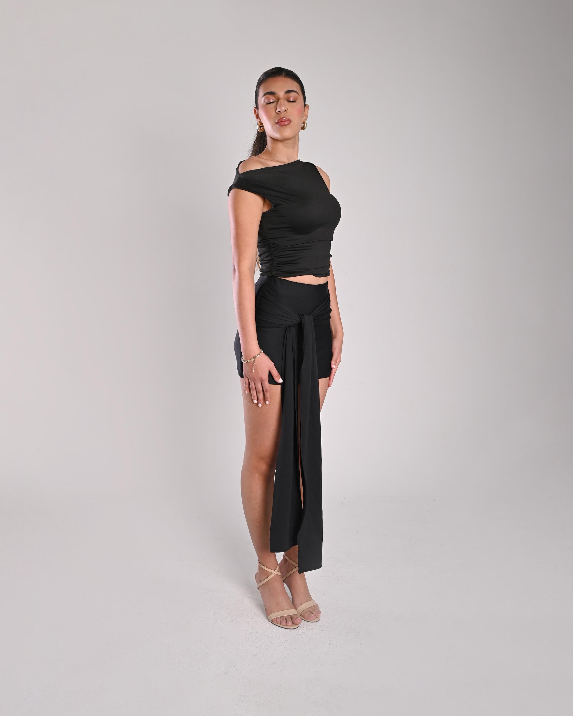 Our knotted skirt with its stretchy, double layered/non see through, body-contouring qualities, each piece molds gracefully to your shape, offering a flattering, seamless fit that moves with you.