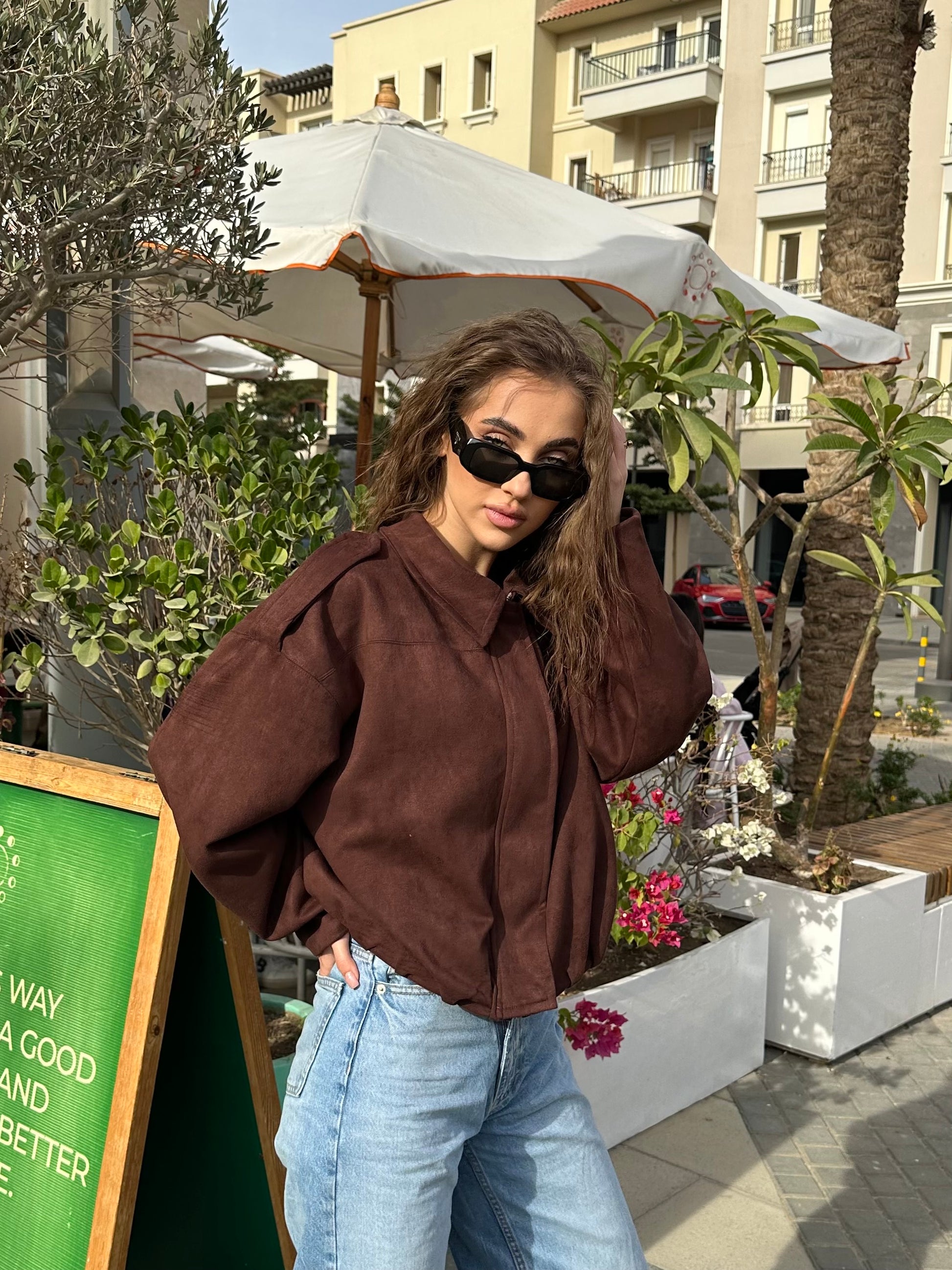 Crafted from soft suede, this bomber brings a touch of sophistication while keeping you warm and comfortable. Styled with our UN-earthed top, it forms the ultimate elevated pairing—effortless, polished, and undeniably chic.
